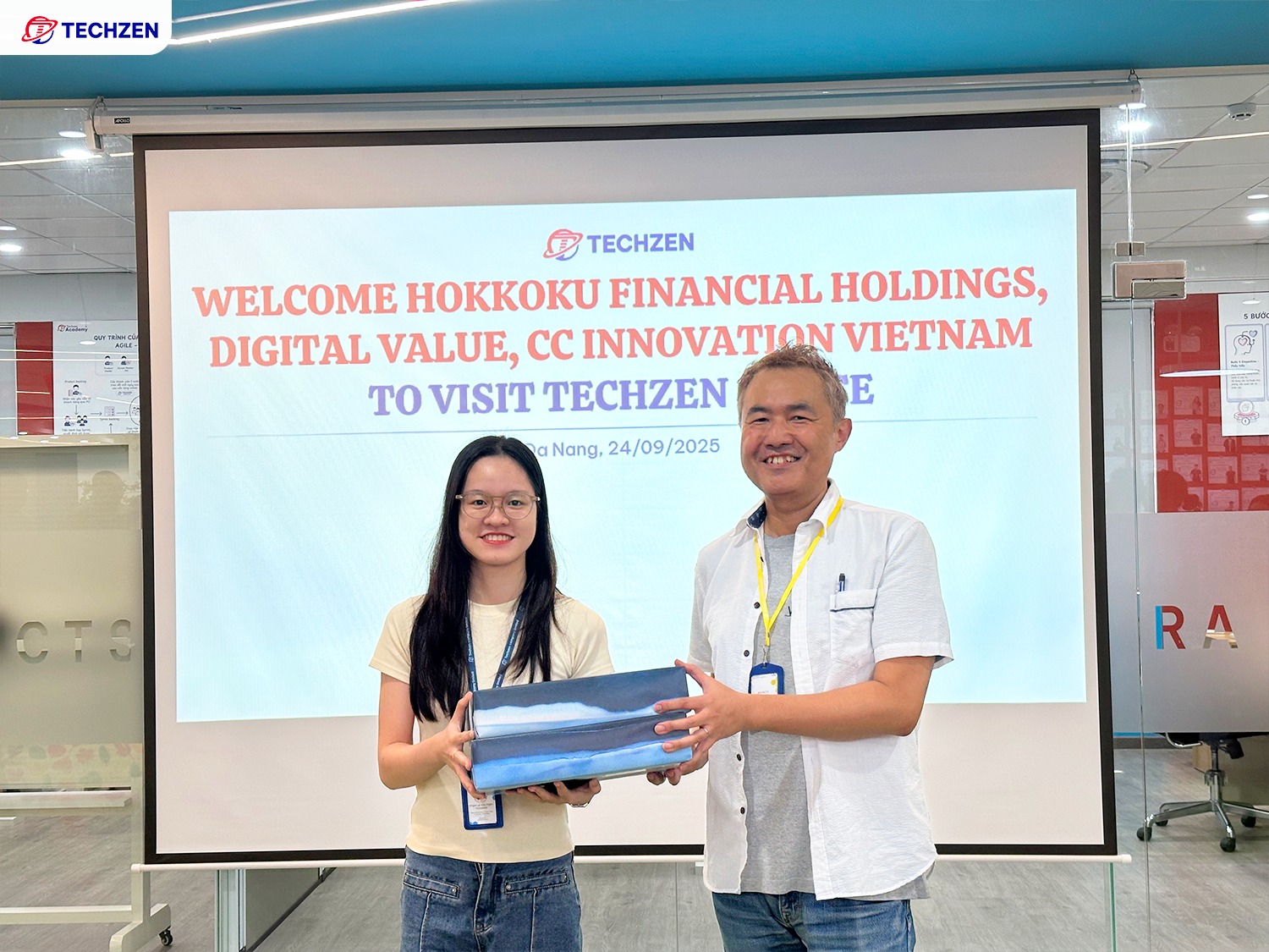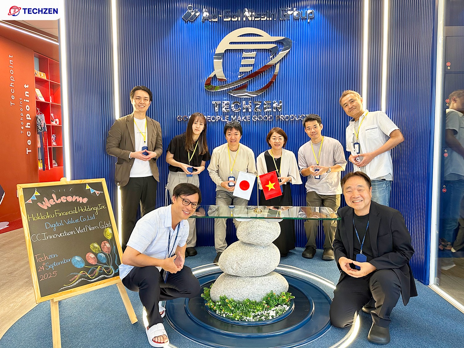 2025年9月24日、Techzenは北國フィナンシャルホールディングス、デジタルバリュー、CCイノベーションベトナムの特別な来訪を迎えた。来訪者一行はTechzenオフィスを訪れ、Techzenerとの交流を通じて有意義な会話とつながりのひとときを過ごした。和やかな雰囲気の中で行われた今回の訪問は、今後の関係深化に向けた貴重な機会となった。